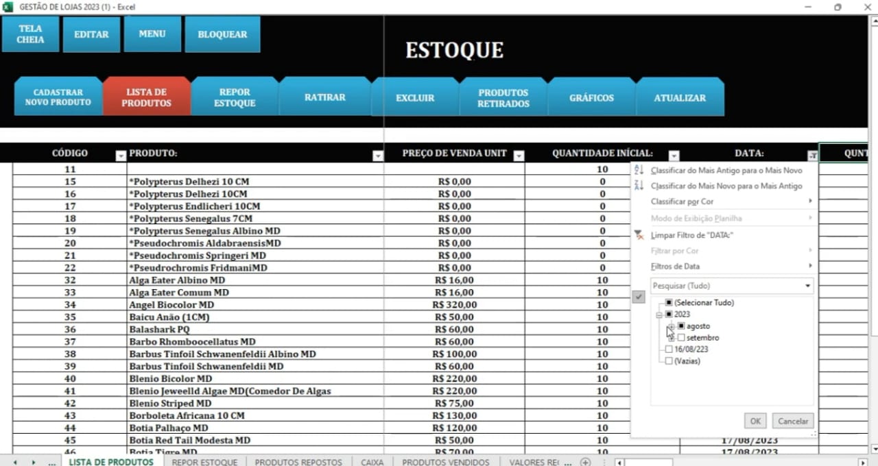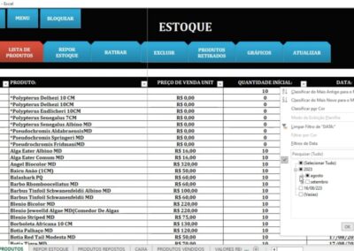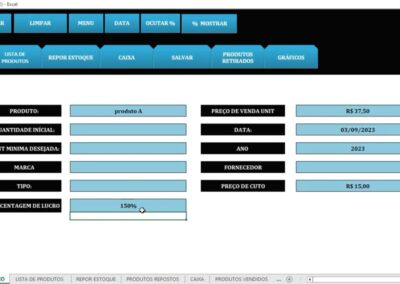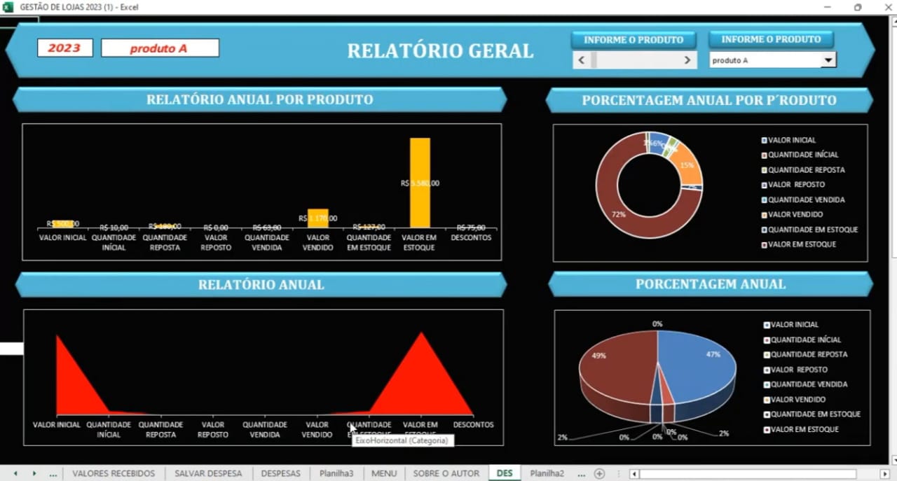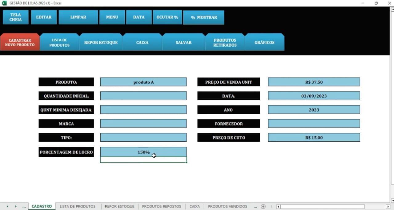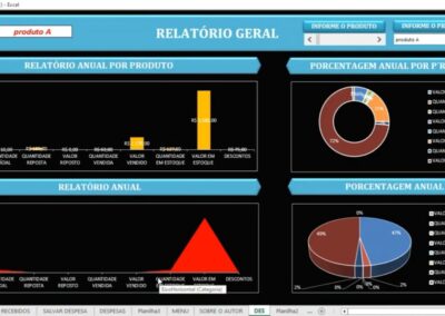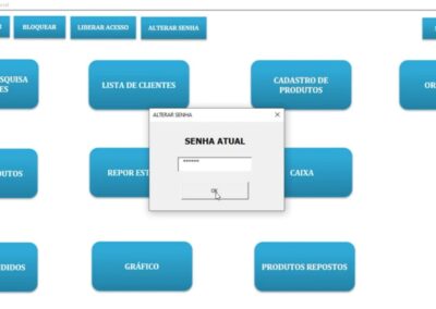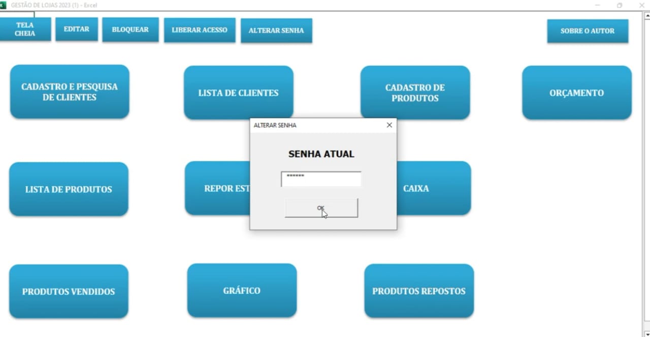 Nessa parte fica o menu para você navegar por toda parte da planilha, e fazer alteração de senha para restringir acesso, só você terá acesso as informações principaes