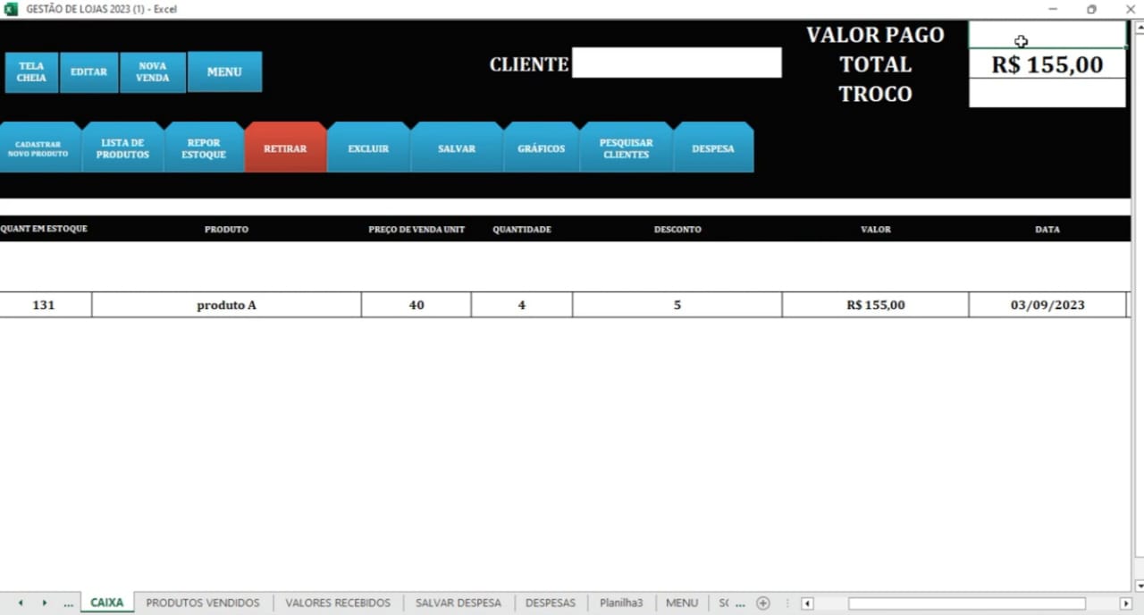 Nessa parte fica o caixa pra você vender, dar baixa na venda, realizar o troco, repor o estoque, conferir o estoque atual de algum produto e muito mais
